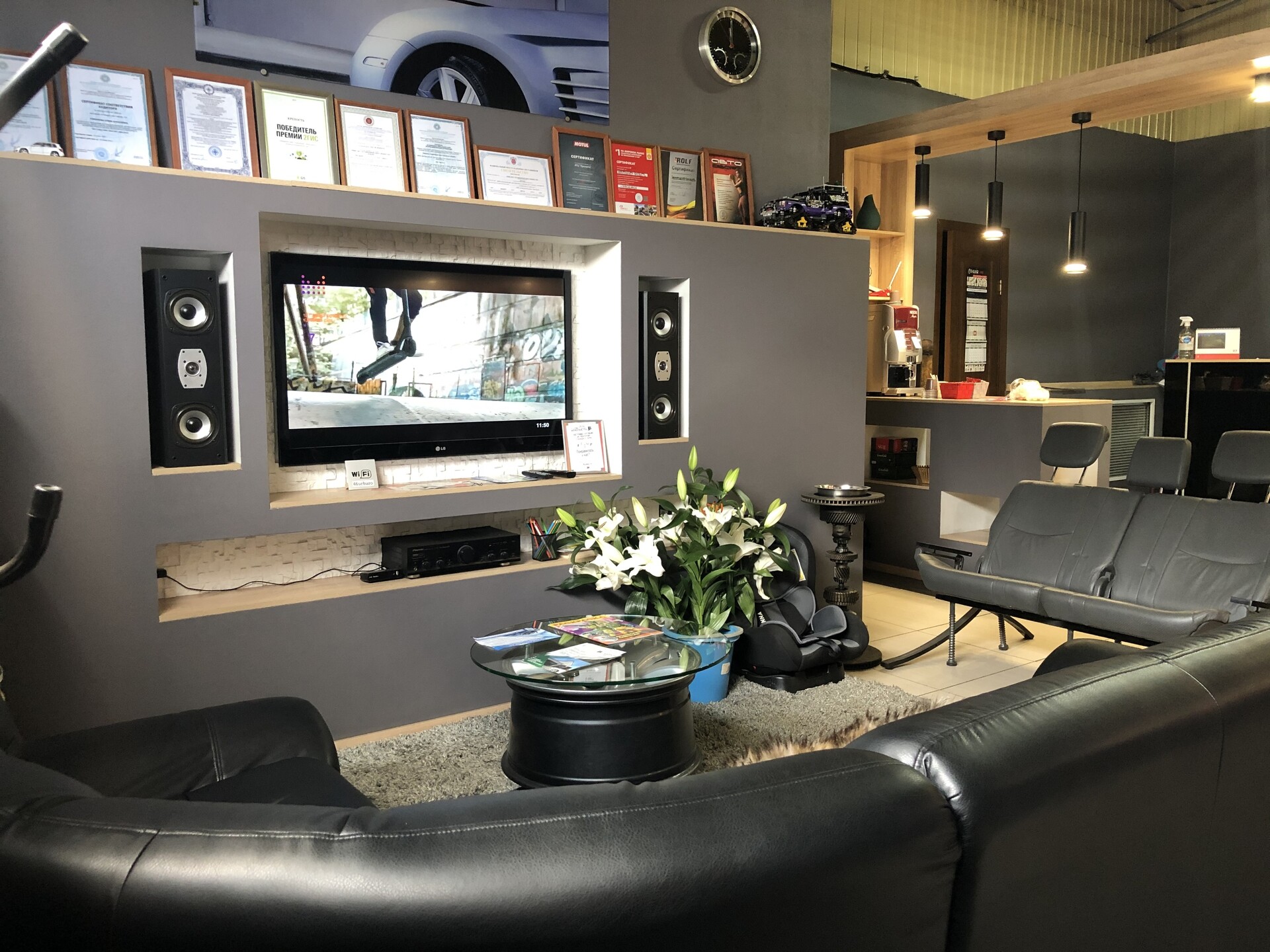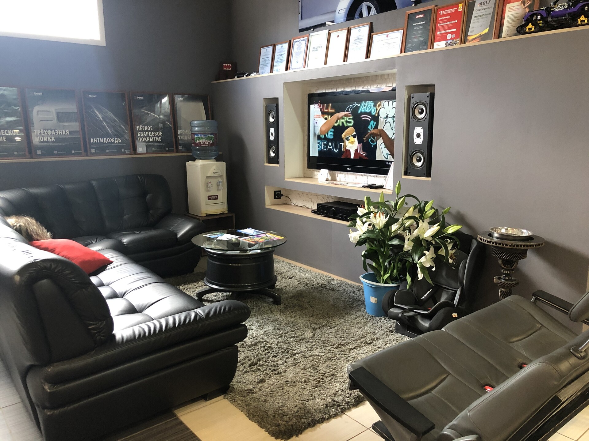 Вы всегда сможете с комфортом провести время в нашей зоне ожидания. У нас есть бесплатный чай, кофе, wi-fi и телевизор